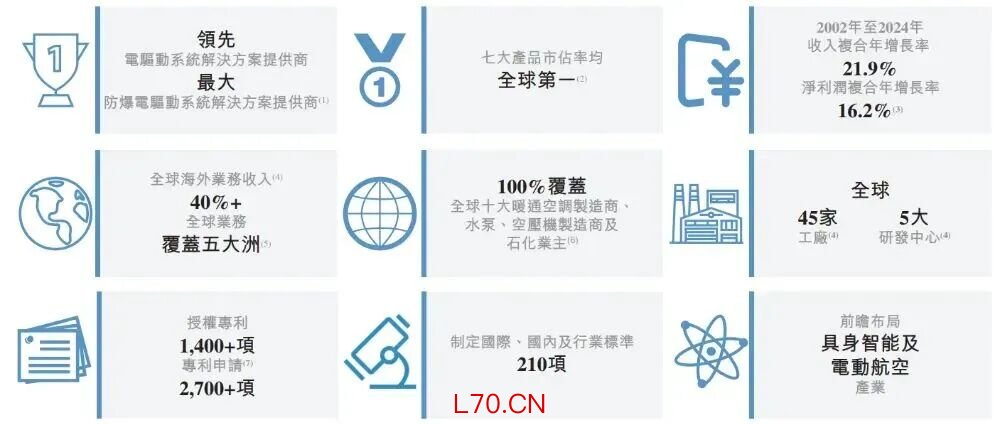 公司是创建于1984年的电驱动系统解决方案提供商,主要从事电驱动系统产品及解决方案的研发、生产、销售及服务。公司持续为全球客户提供:(i)防爆电驱动系统解决方案,(ii)工业电驱动系统解决方案,(iii)暖通电驱动系统解决方案,(iv)新能源交通电驱动系统解决方案,及(v)机器人组件及系统应用。
