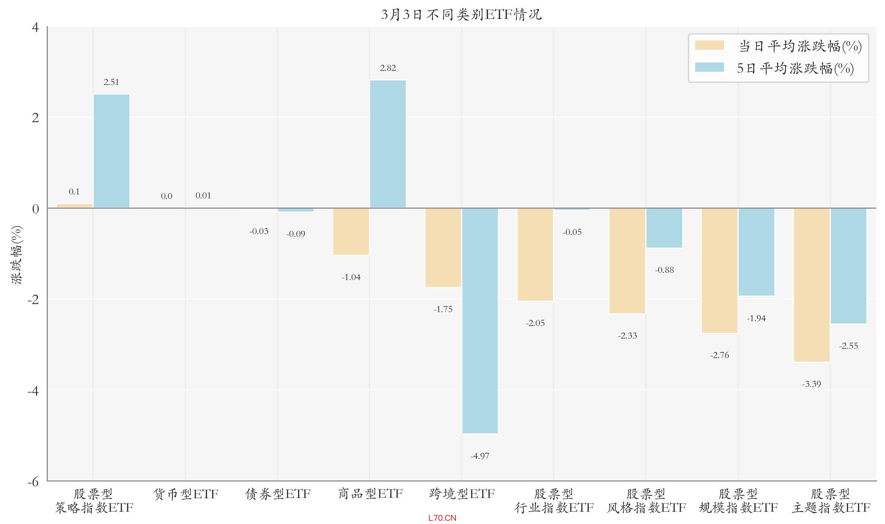 根据ETF基金的规模和涨跌幅计算得出不同分类情况下各类ETF基金的平均涨跌幅。
