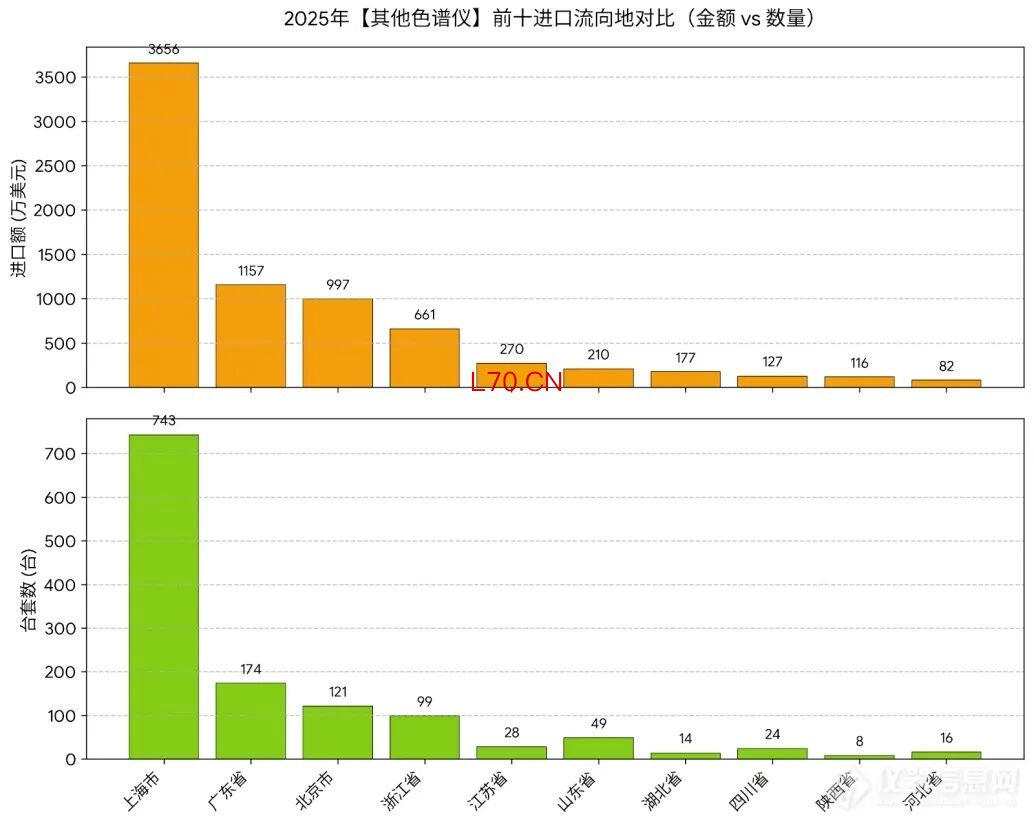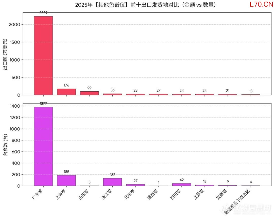 这种单一省份对单一特区的庞大出口,具有强烈的“供应链过境”与“模块化集散”特征。推测珠三角地区凭借极强的机电加工能力,正在大量代工或自主生产色谱仪的高价值核心模块,经由香港这一贸易中转站分发至全球。